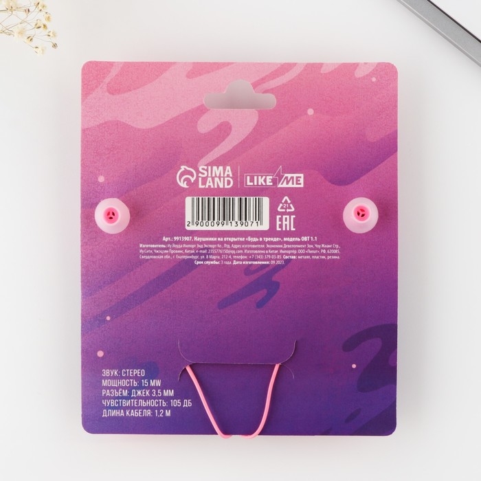 Наушники на открытке "Будь в тренде", мод.OBT 1.1 , 120 см