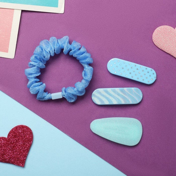 Набор для волос "Толиман" 4 шт (1 резинка-6 см,3 невидимки- 5 см) голубой