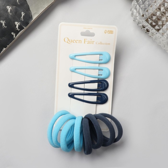 Набор для волос "Мира" (4 невидимки-5 см,8 резинок-3,5 см) сине-голубой