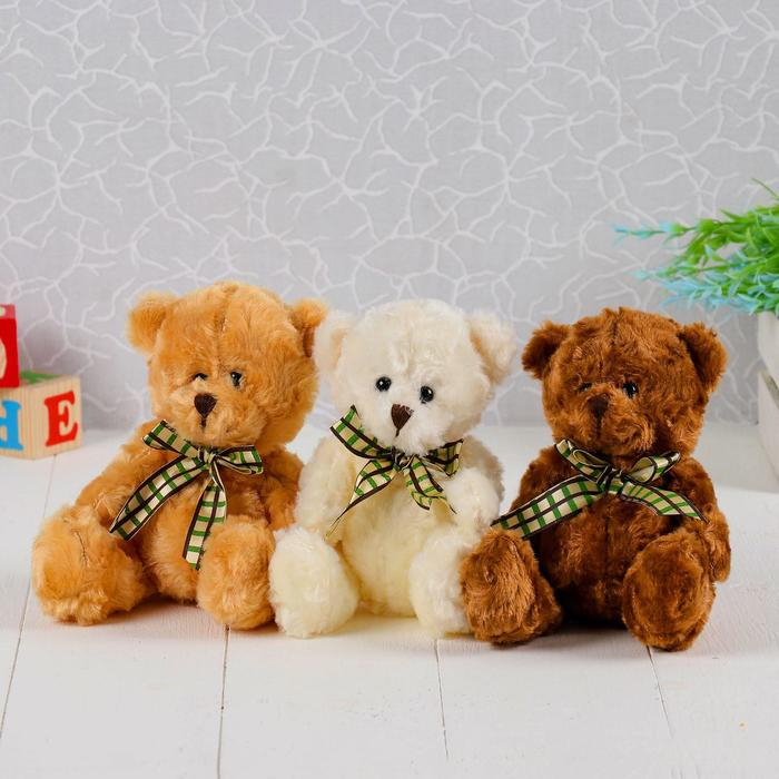 Мягкая игрушка «Медведь завиток», бант, клетка, цвета МИКС