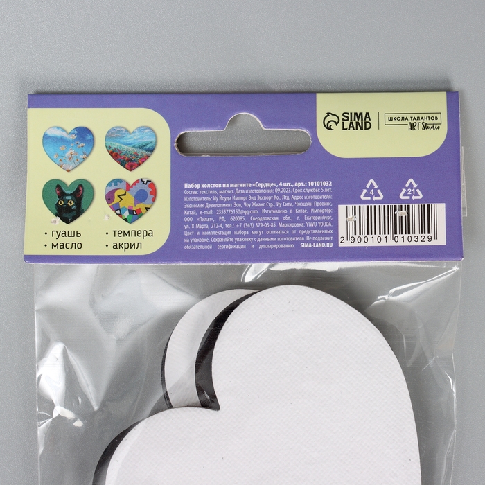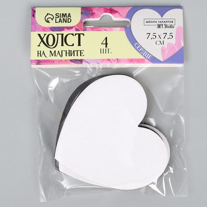 Набор холстов на магните «Сердце», 7,5 см, 4 шт