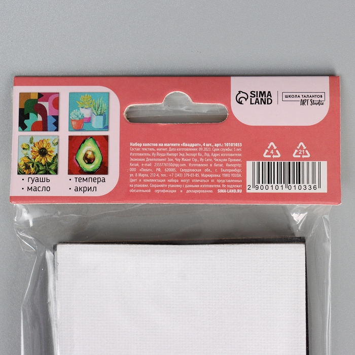 Набор холстов на магните «Квадрат», 7,5 см, 4 шт