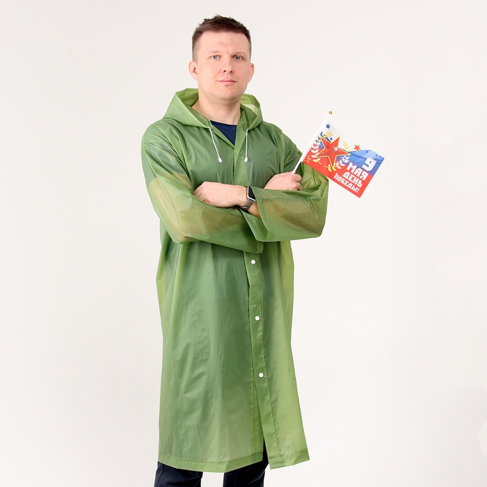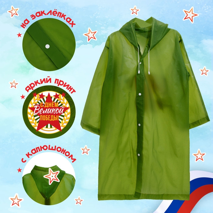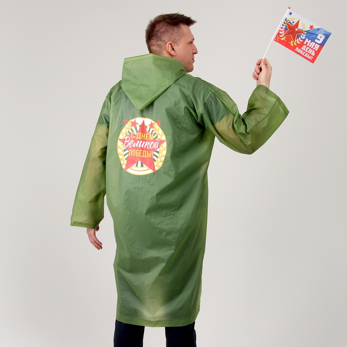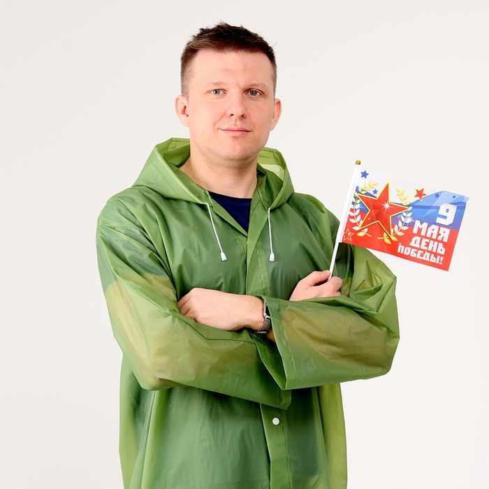 Этот набор будет уместен на различных мероприятиях, посвященных Дню Победы, таких как парады, митинги, шествия или просто праздничные прогулки. Дождевик защитит от непогоды, а флажок поможет выразить уважение и память о событиях, связанных с этим днем. Набор также можно использовать в качестве тематического аксессуара на карнавальных вечеринках или в образовательных мероприятиях, посвященных историческим событиям.