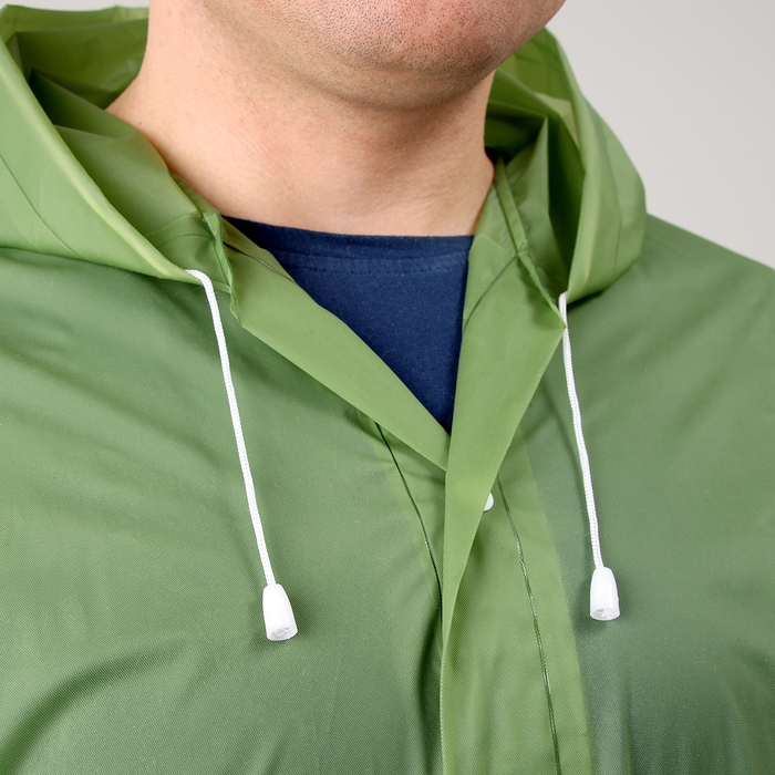 - Материал дождевика водонепроницаемый, защищает от дождя и ветра.