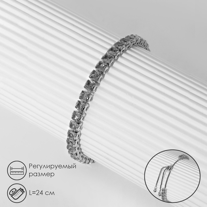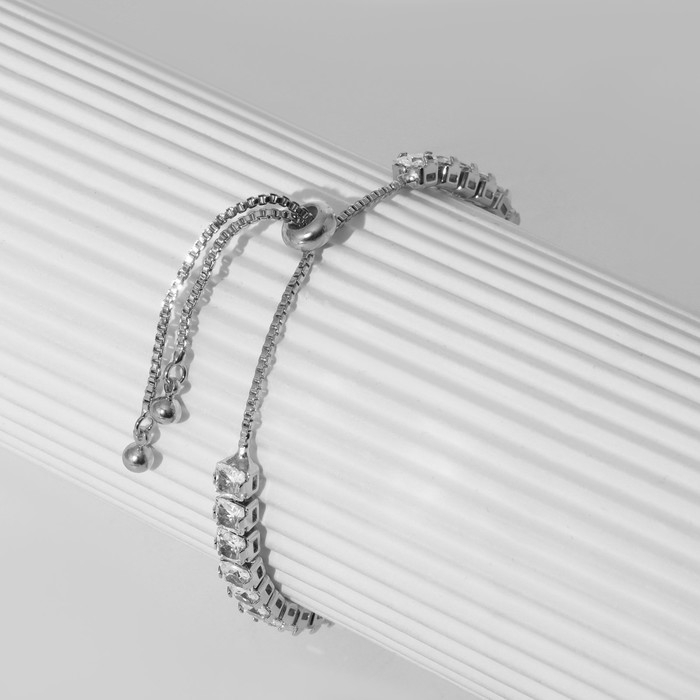 Браслет со стразами «Сияй» на затяжке, цвет белый в серебре