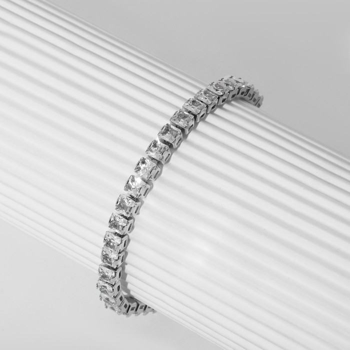 Браслет со стразами «Лёд» 1 ряд, цвет голубой в серебре, 4 мм, d=7 см