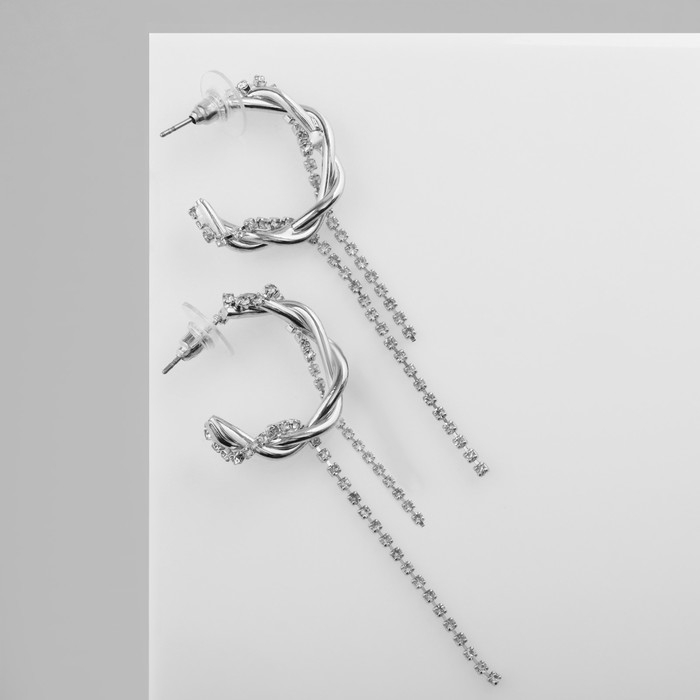 Серьги висячие со стразами «Кольца» с подвесками, цвет белый в серебре