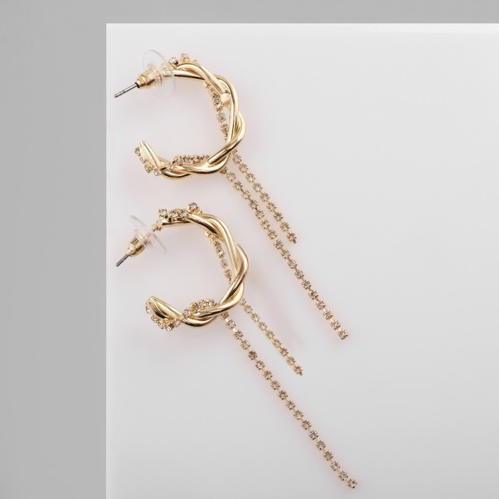 Серьги висячие со стразами «Кольца» с подвесками, цвет белый в золоте