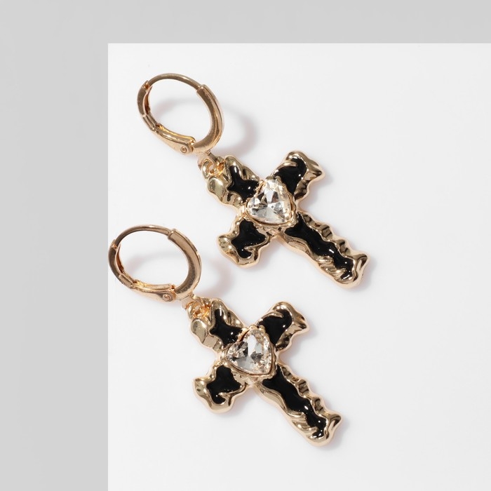 Серьги эмаль «Крестики» гранж, цвет бело-чёрный в золоте