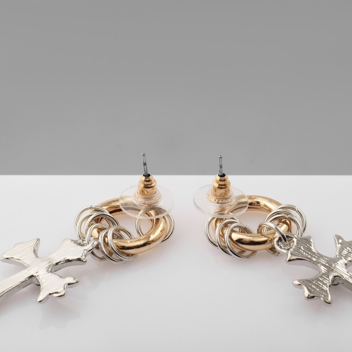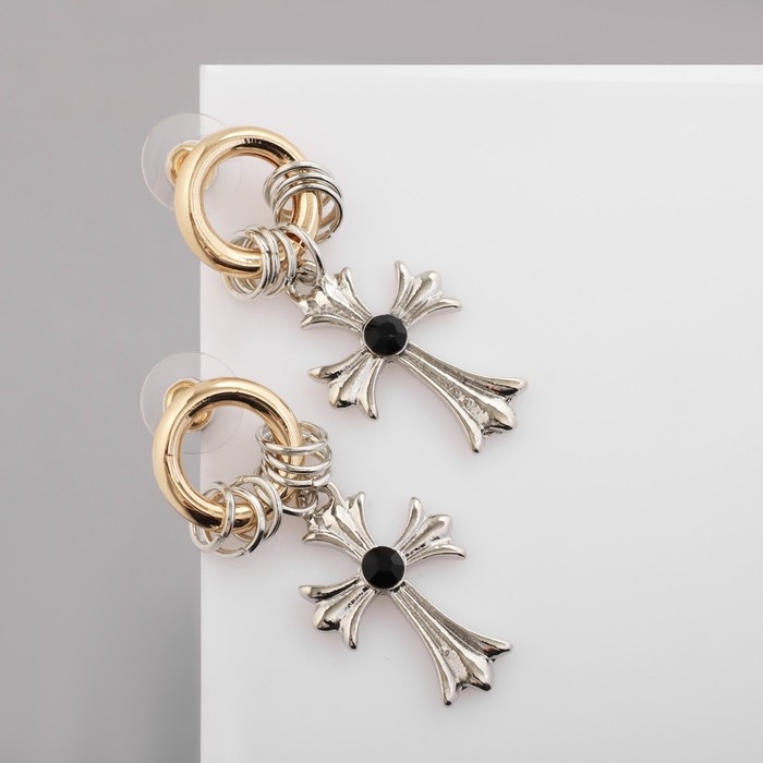 Серьги со стразами «Крестики» с колечками, цвет серебряно-золотой
