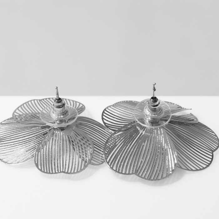 Серьги с жемчугом «Цветы» лёгкие, цвет белый в серебре