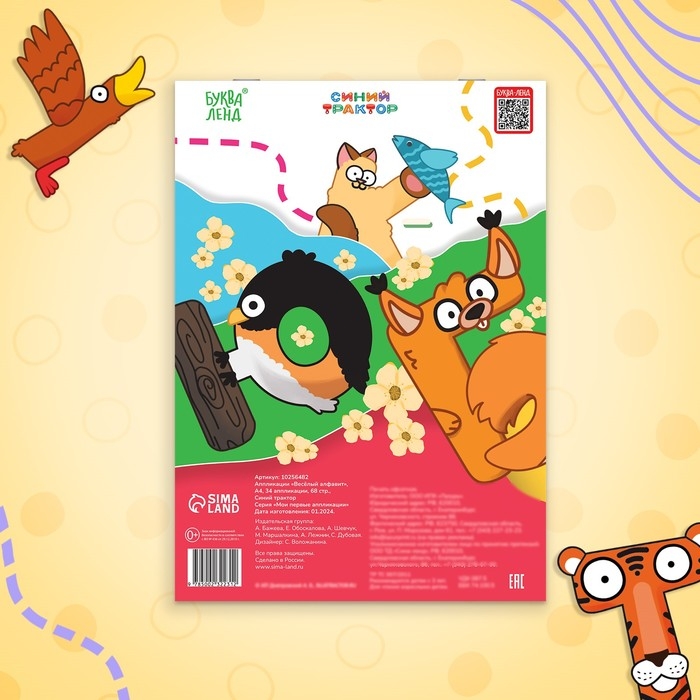 Аппликации «Весёлый алфавит», А4, 34 аппликации, 68 стр., Синий трактор