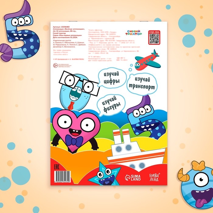 Аппликации «Весёлые аппликации», А4, 32 аппликации, 68 стр., Синий трактор