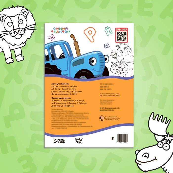Раскраска «Весёлая азбука. Синий трактор», А4, 36 стр.