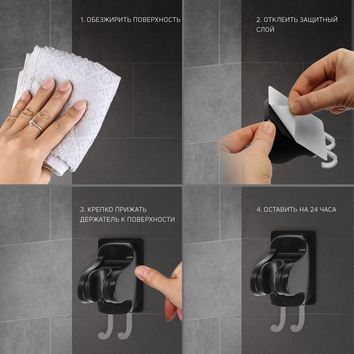 Держатель для душевой лейки ZEIN Z122, самоклеющейся, регулируемый, с крючком, черный