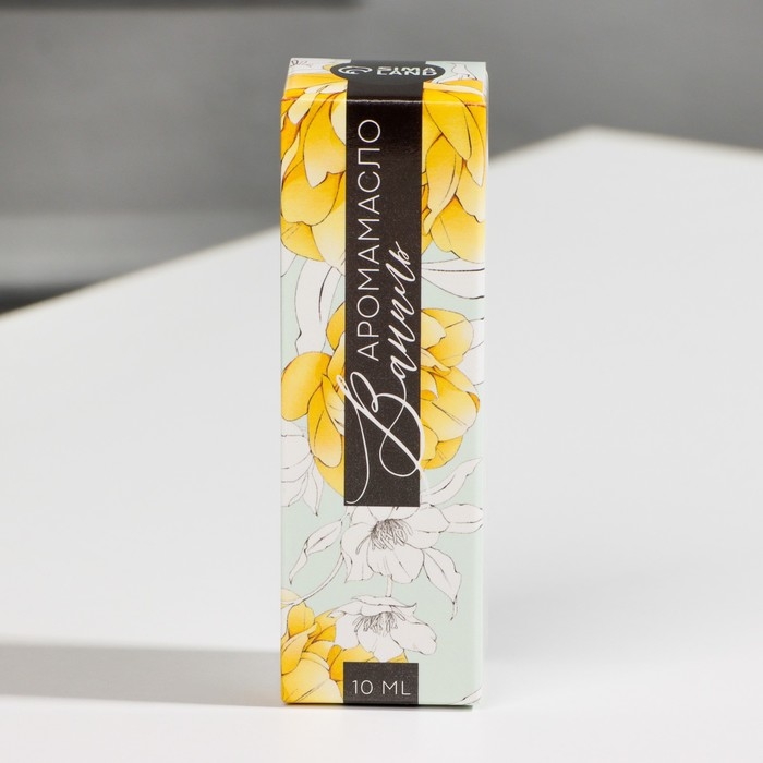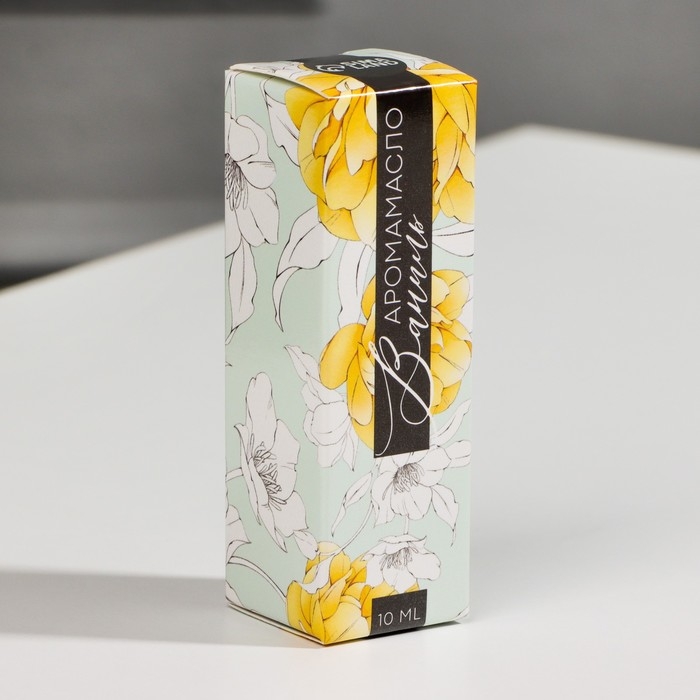 Бутылочка объемом 10 мл заключена в красивую картонную коробочку с изображением ванили.