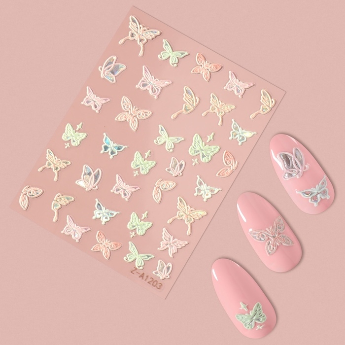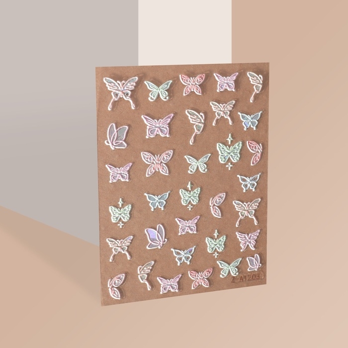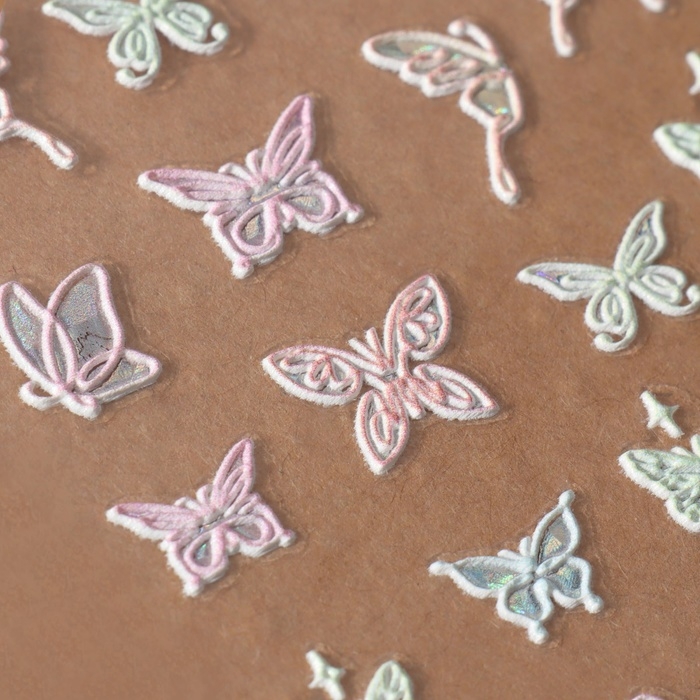 Наклейки для ногтей «Бабочки», объёмные, разноцветные/голографические