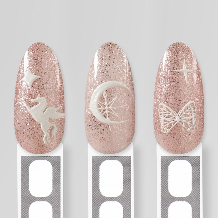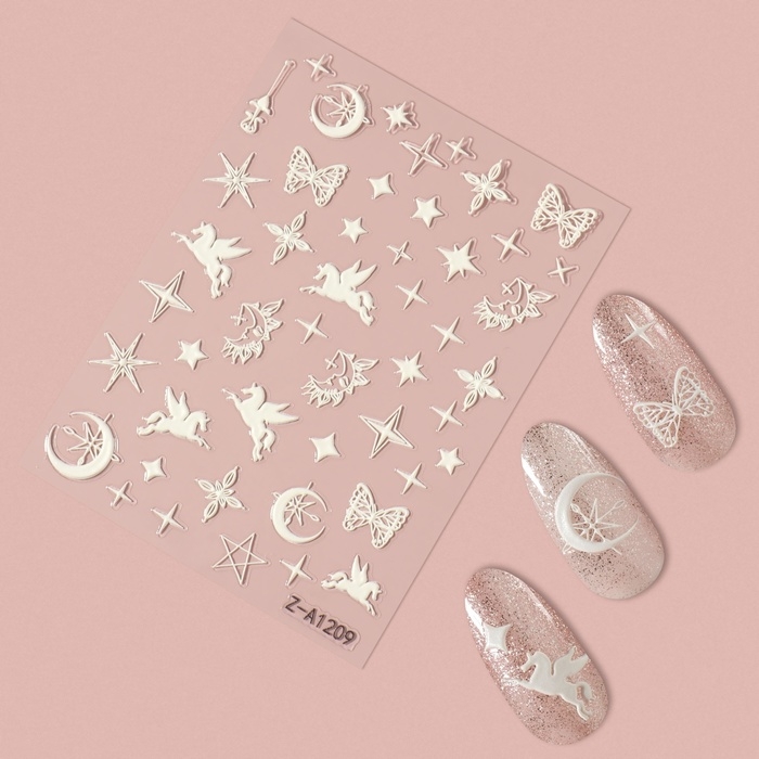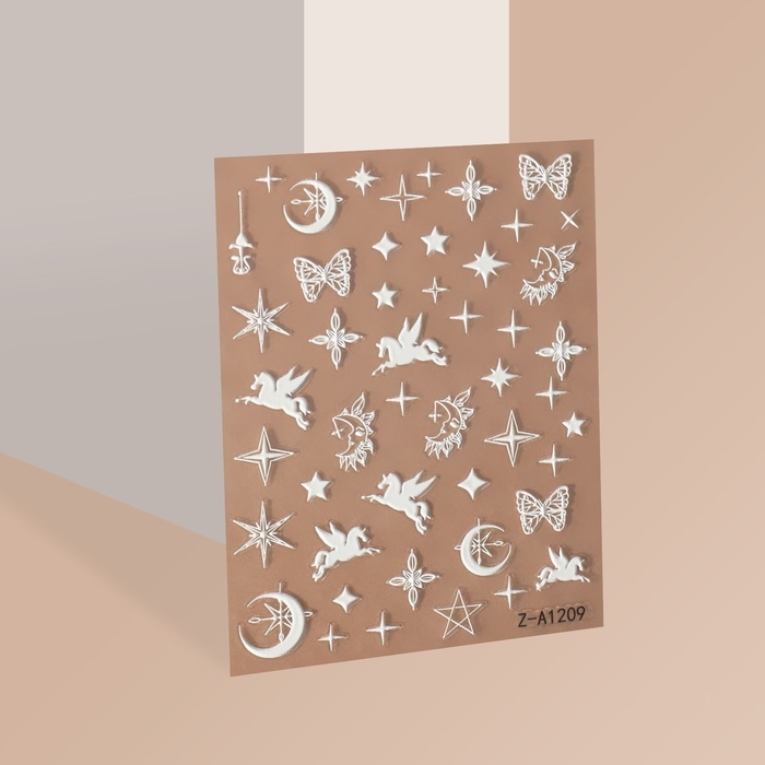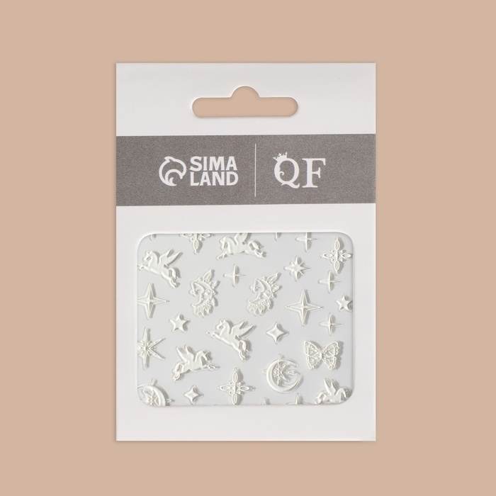 Наклейки для ногтей «Волшебство пегаса», объёмные, цвет белый