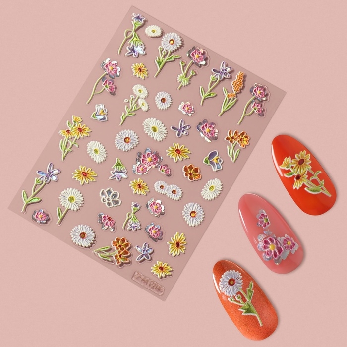Наклейки для ногтей «На поле», объёмные, разноцветные