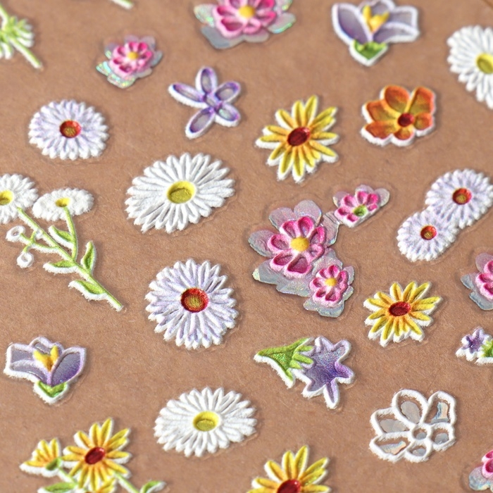 Наклейки для ногтей «Букеты ромашек», объёмные, цвет белый