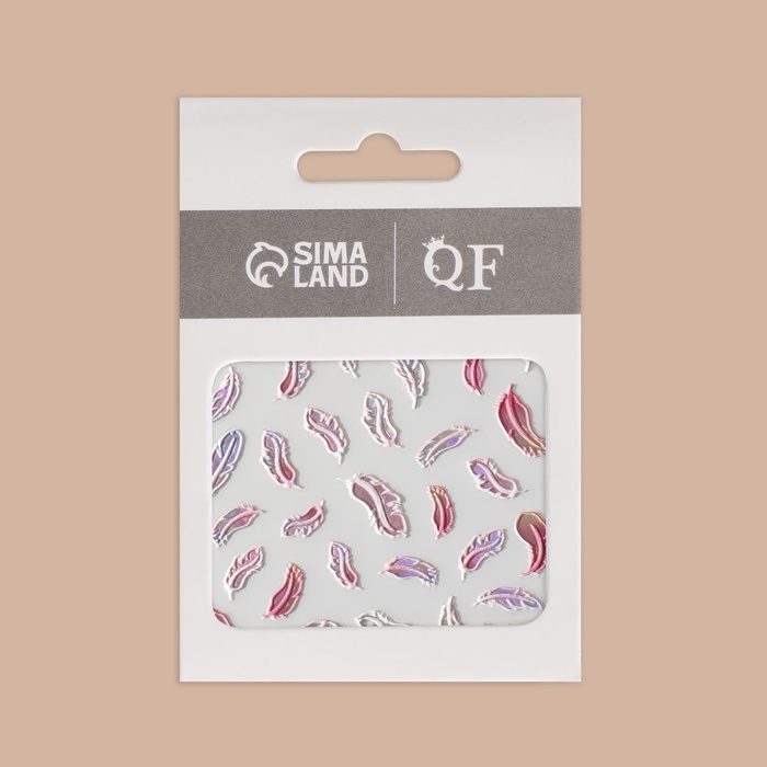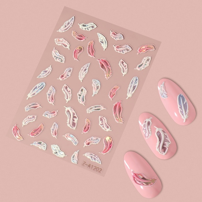 Наклейки для ногтей «Пёрышки», объёмные, разноцветные/голографический