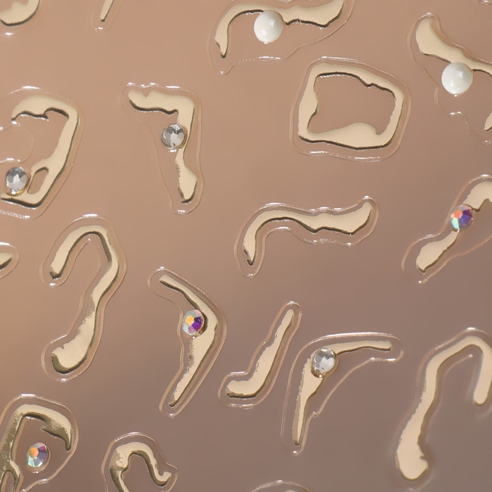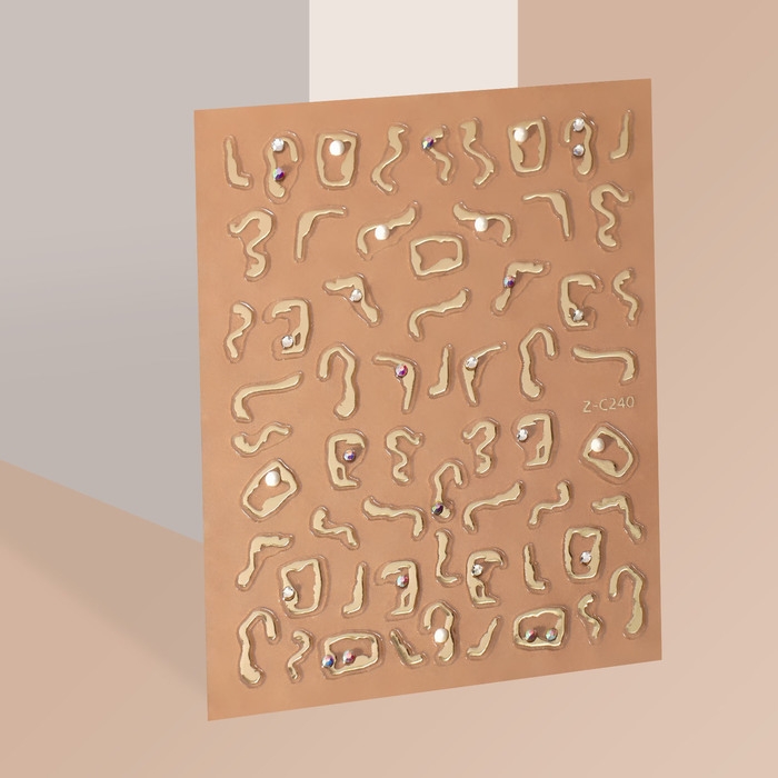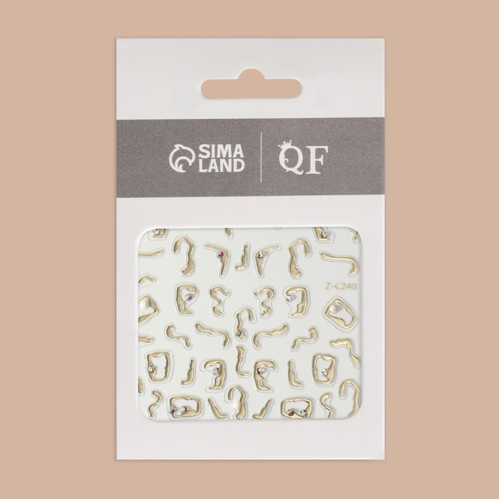 Наклейки для ногтей «Блики», объёмные, металлизированные, со стразами и бусинами, цвет золотистый