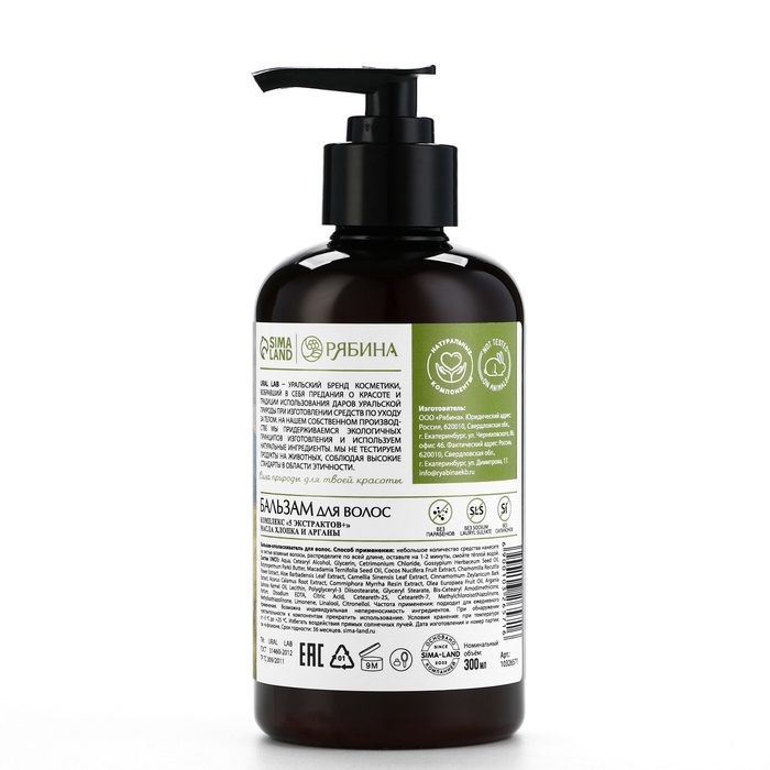 Бальзам для волос с маслом хлопка и арганы, восстановление, 300 мл, ECO LAB by URAL LAB