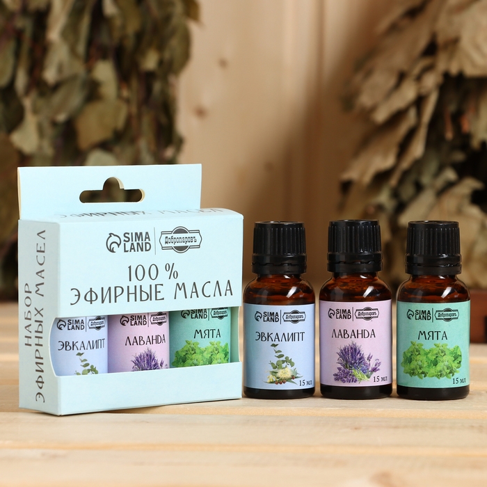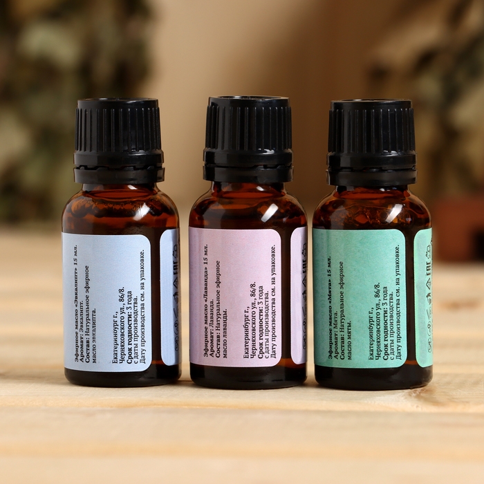 Набор эфирных масел 3 шт "Лаванда, Эвкалипт, Мята" по 15 мл