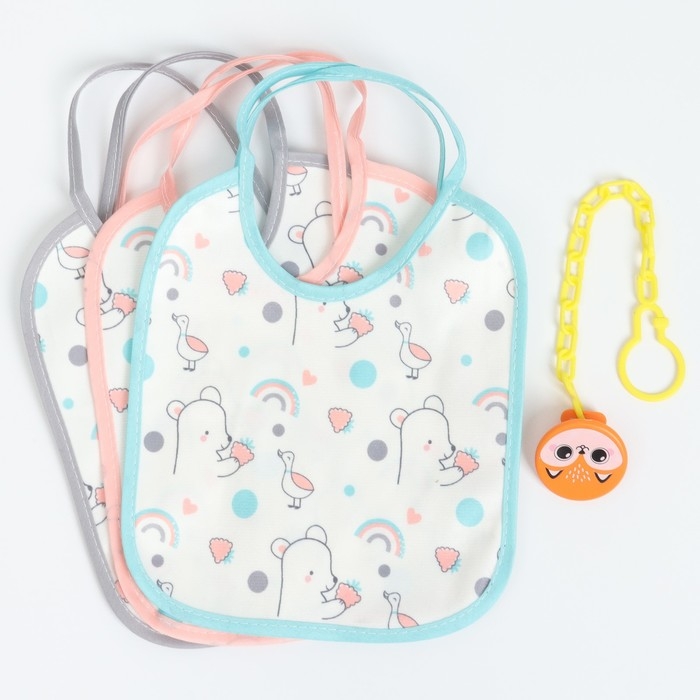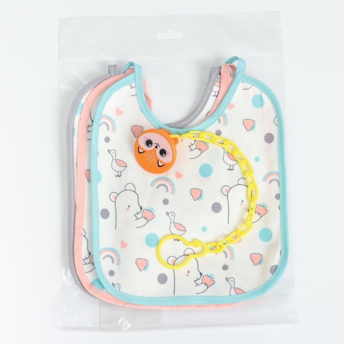 Набор детских слюнявчиков Крошка Я, 3 шт. + подарок, 20х17 см., цвет бирюзовый, розовый, серый