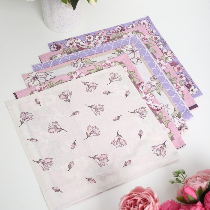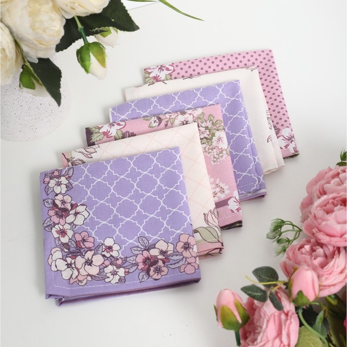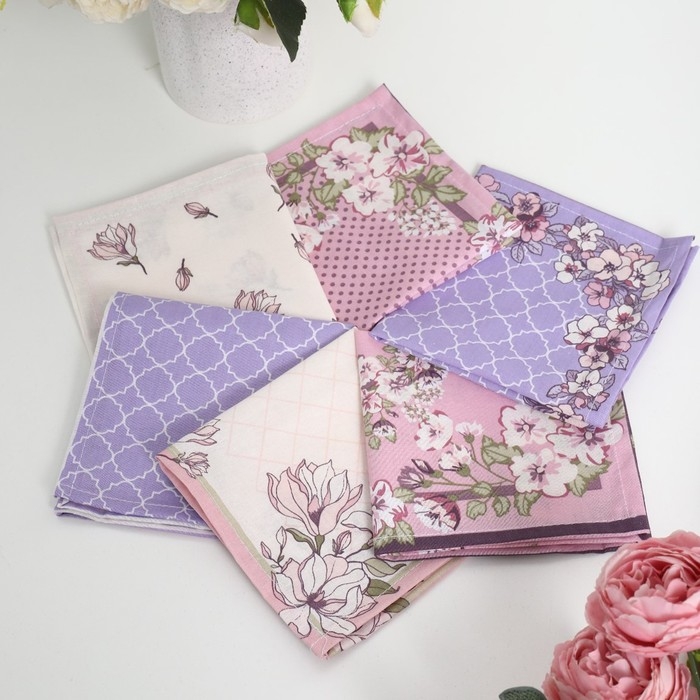 Платок носовой женский 28х28см, 6шт, рис 64094-1, МИКС, ситец 100г/м, хл100%