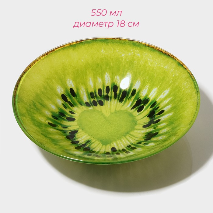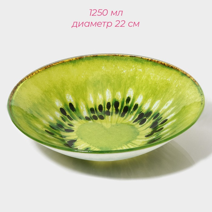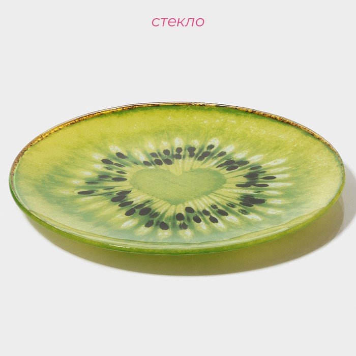 Набор тарелок стеклянных Доляна «Романтичный киви», 19 предметов: 6 десертных тарелок, 6 обеденных тарелок, 6 мисок, салатник