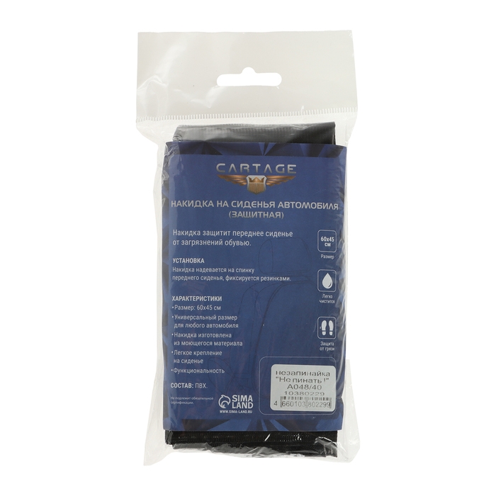 Накидка на сиденье автомобильное Cartage "Не пинать!", ПВХ, 60х45 см, европодвес