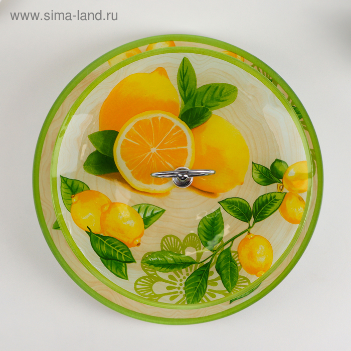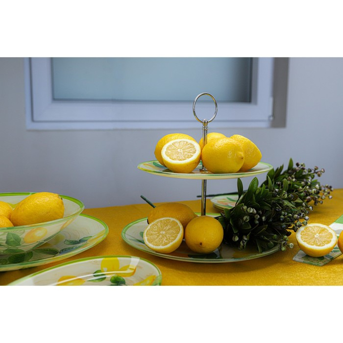 Этажёрка - фруктовница круглая Доляна «Дольче», 2 яруса, d=25/20 см, стекло, цвет жёлтый