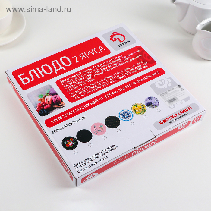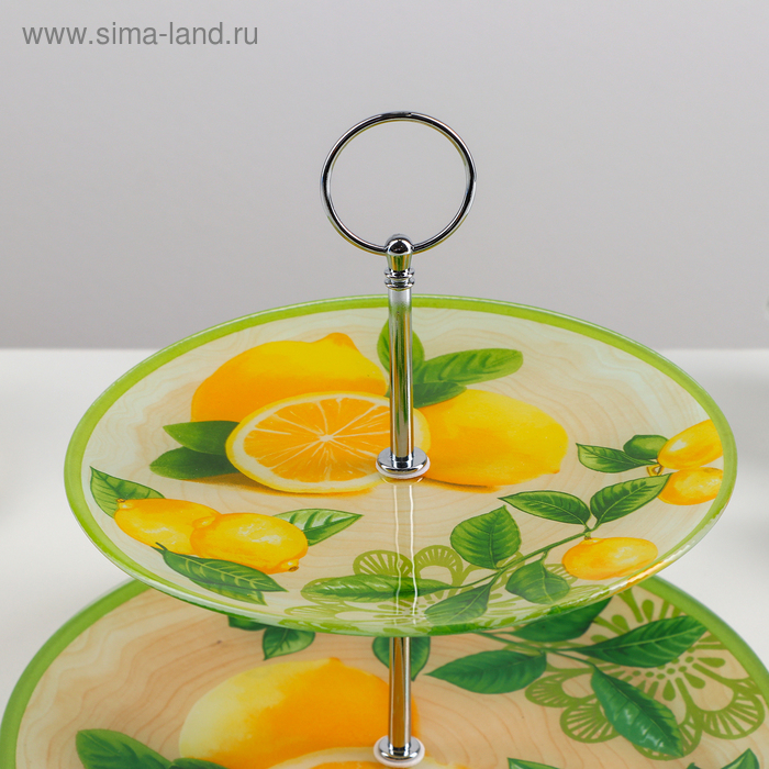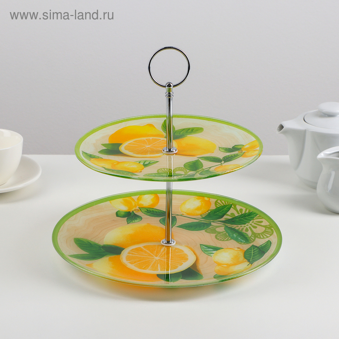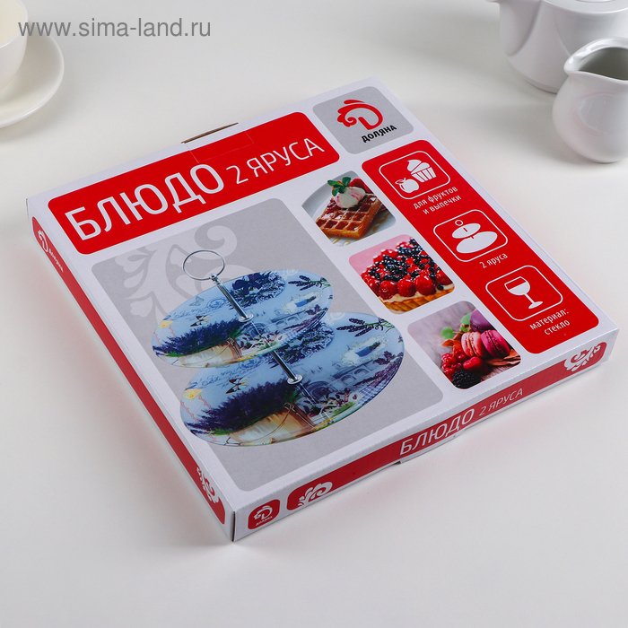 Оригинальное 2-х ярусное блюдо изготовлено из качественного и прочного стекла. Блюдо можно использовать для подачи фруктов и различных кондитерских изделий. Благодаря красочному дизайну эта посуда станет чудесным украшением праздничного стола.