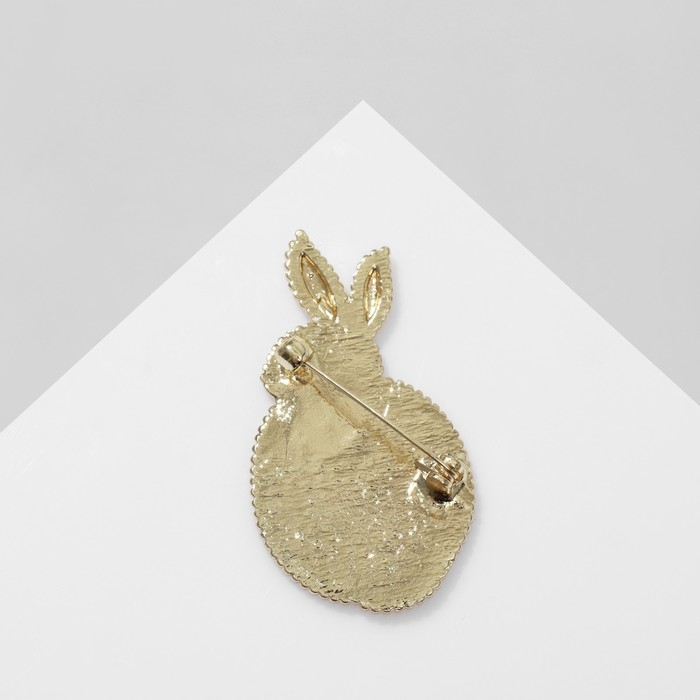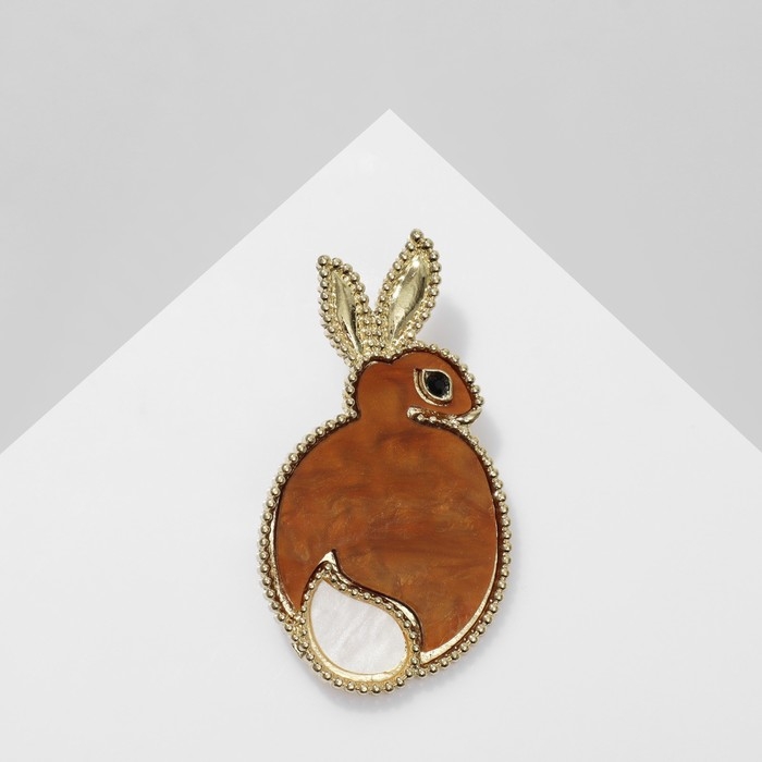 Брошь «Зайчик» янтарный, цвет бело-коричневый в золоте
