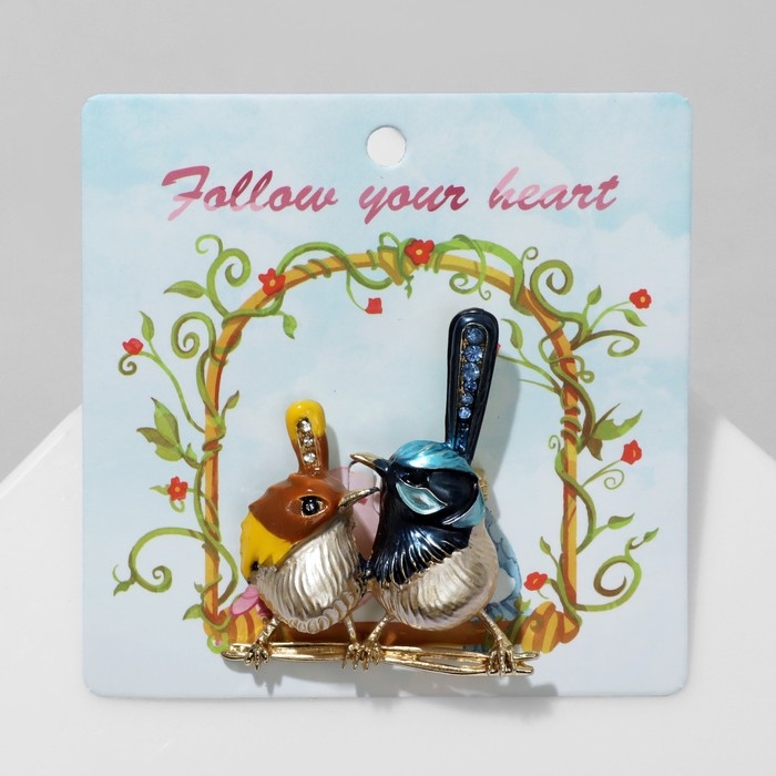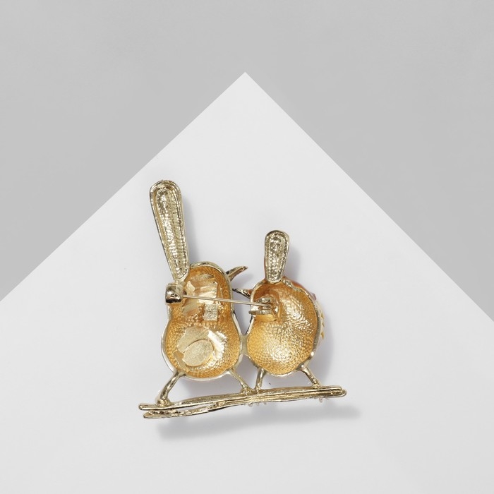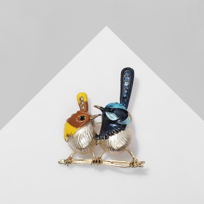 Брошь «Птички» парочка, цветная в золоте