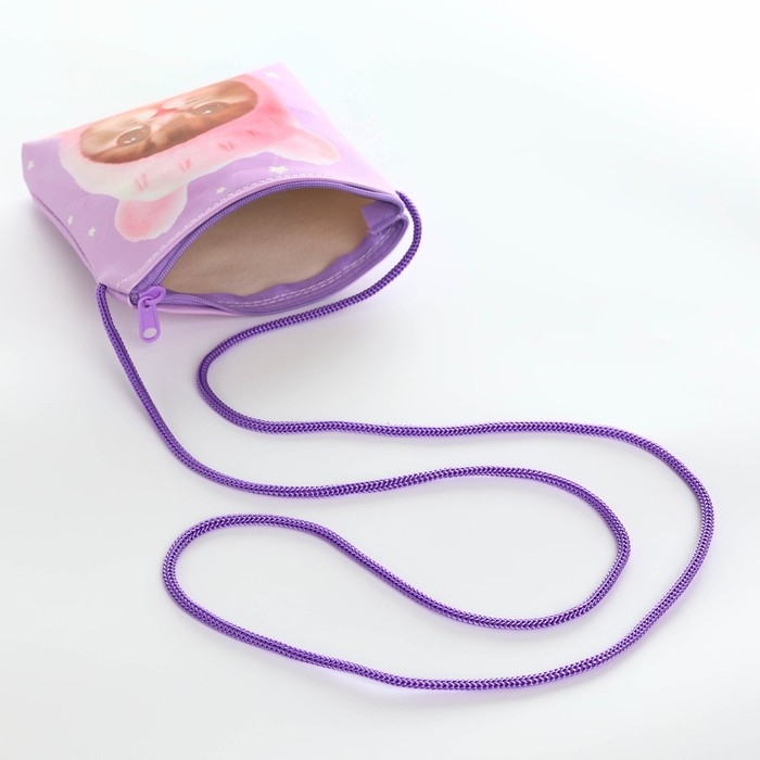 Сумка-кошелёк, для девочки через плечо "Котик в шапке", 13х13х2 см