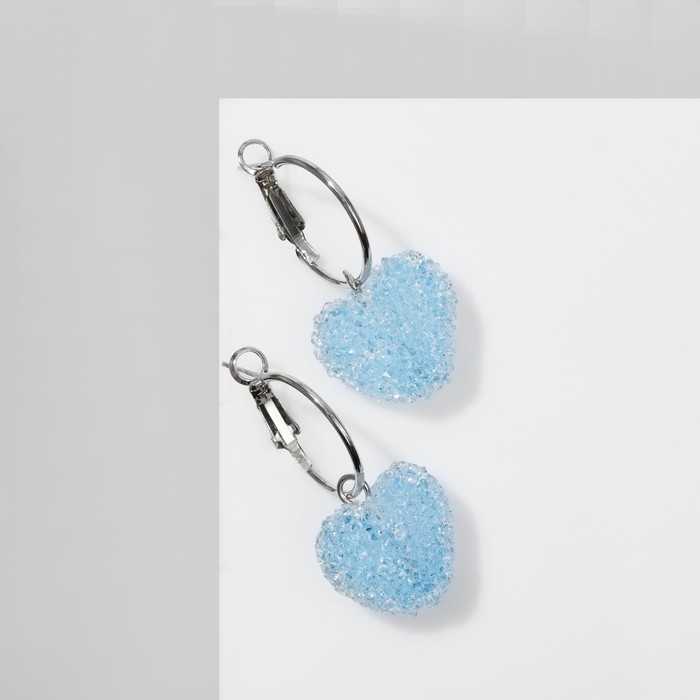 Серьги пластик «Сахар» сердце, цвет голубой в серебре