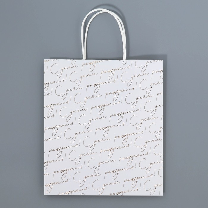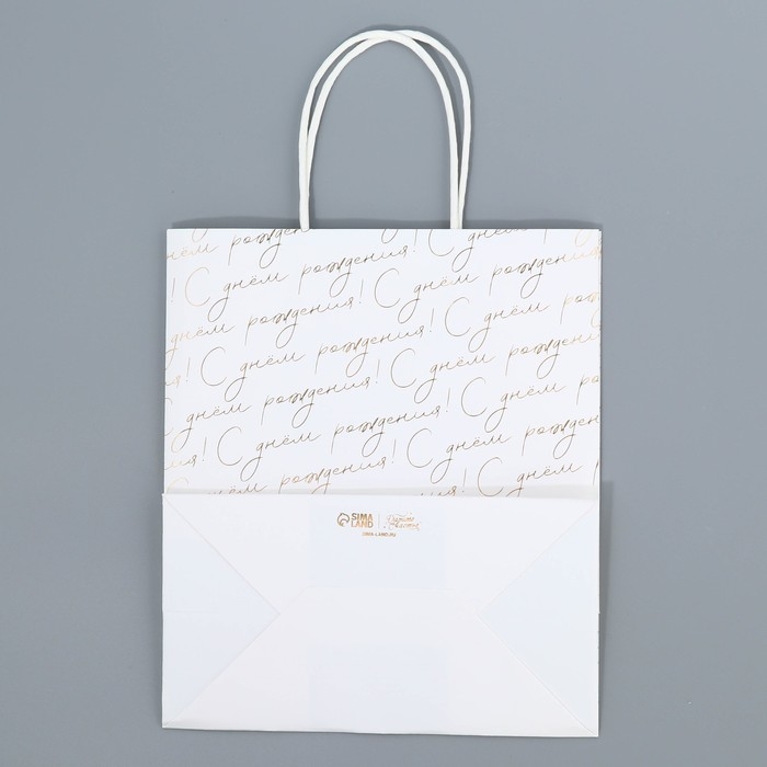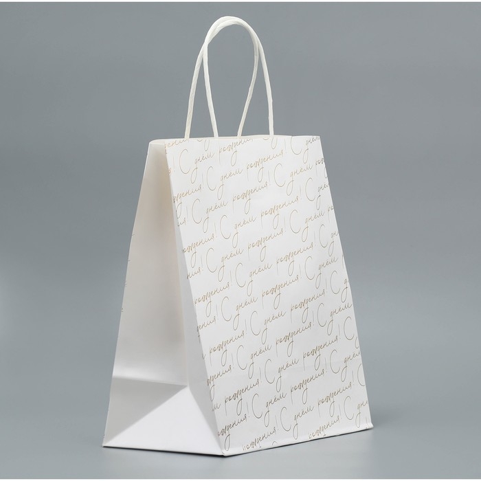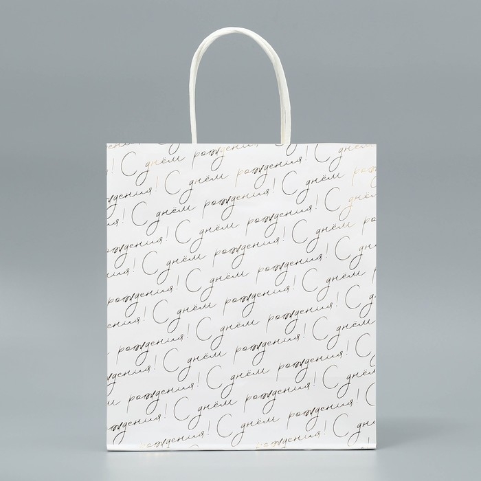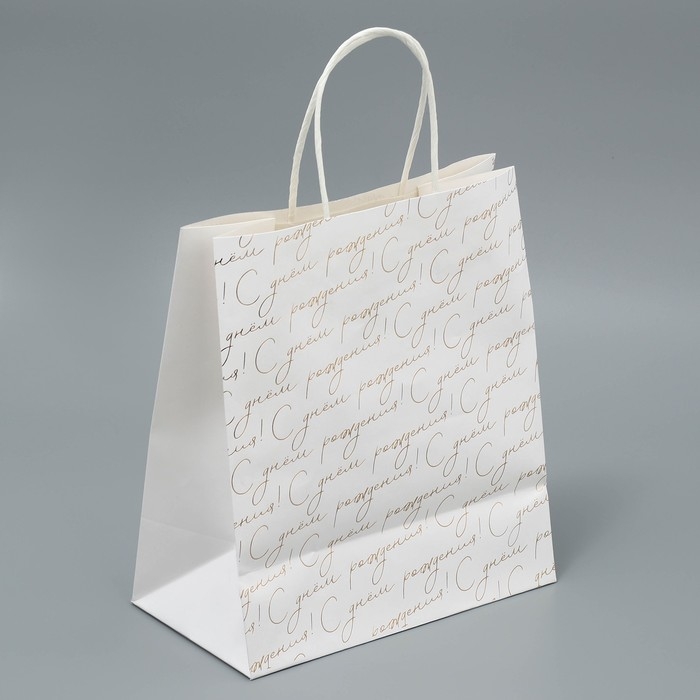 Пакет подарочный крафтовый, упаковка, «С днём рождения», 22 х 25 х 12 см