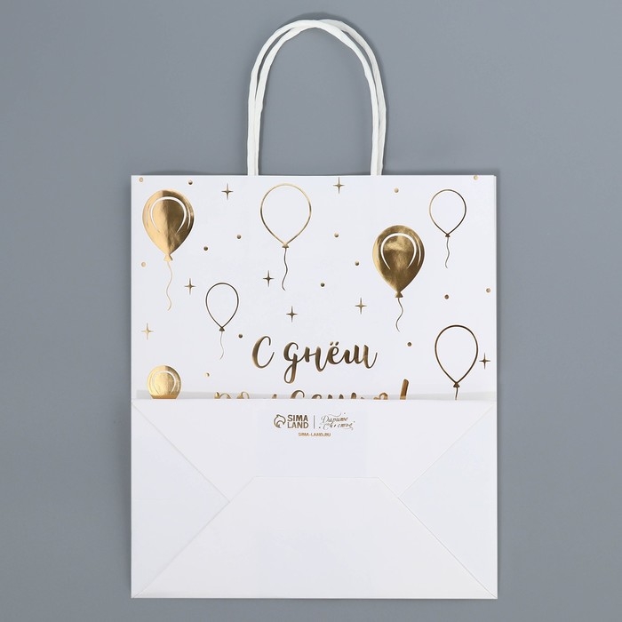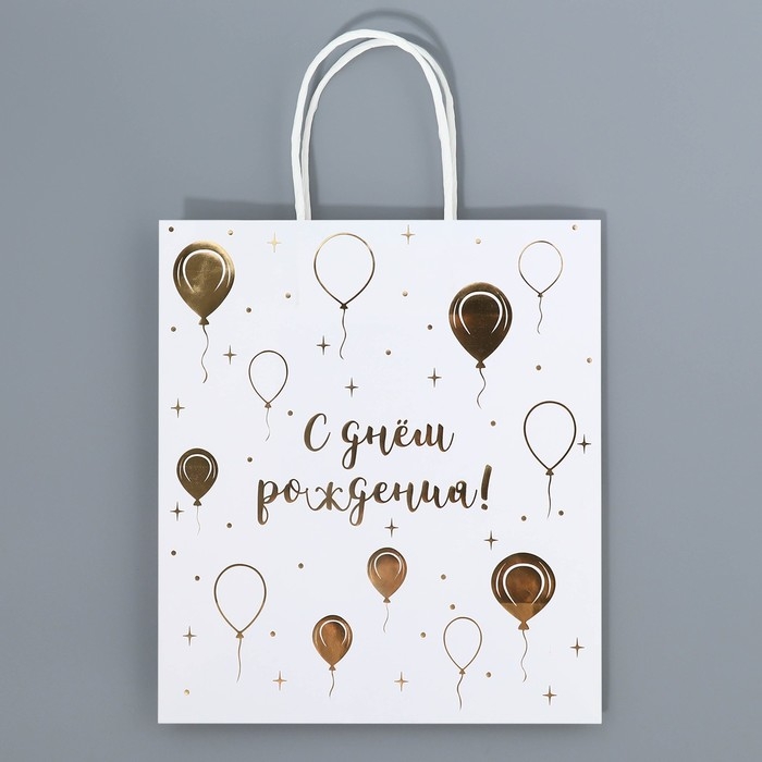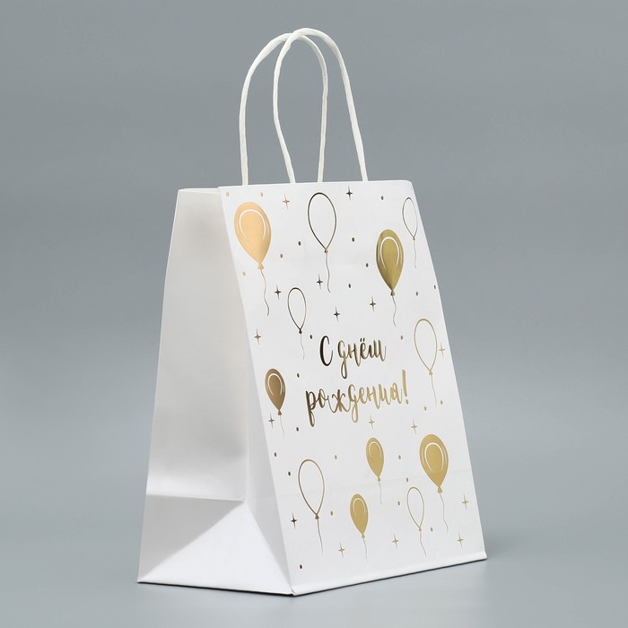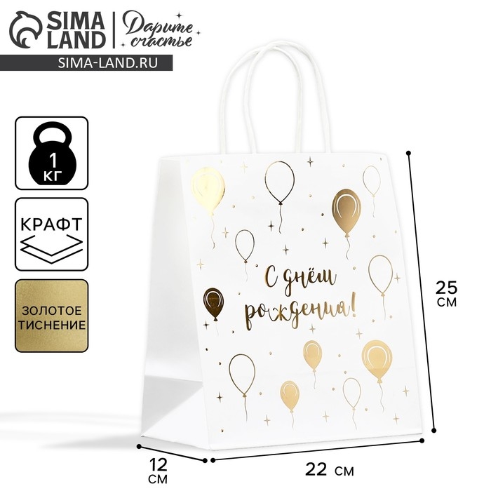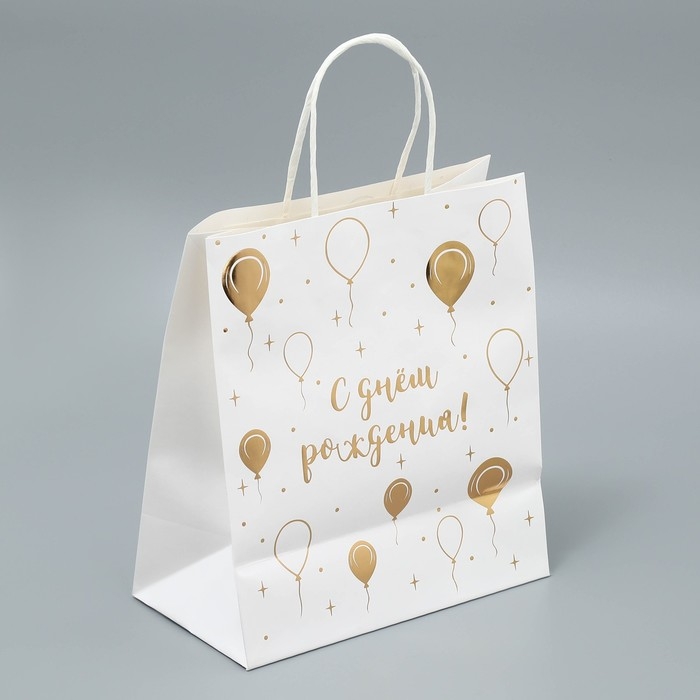 Пакет подарочный крафтовый, упаковка, «С днём рождения!», 22 х 25 х 12 см