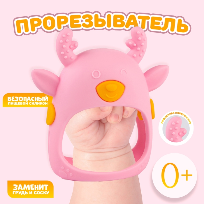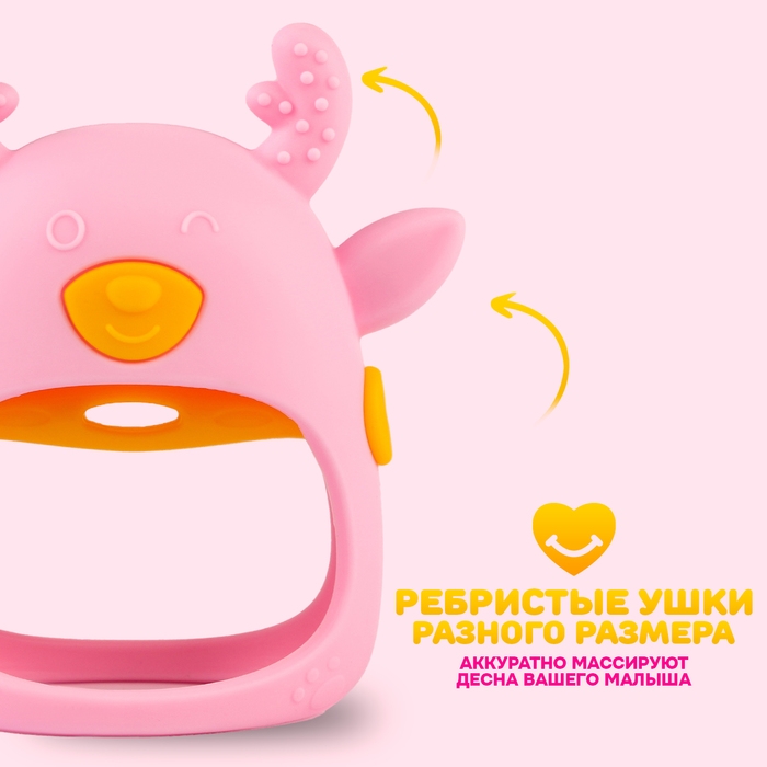 Прорезыватель для зубов «Оленёнок», силиконовый, цвет розовый