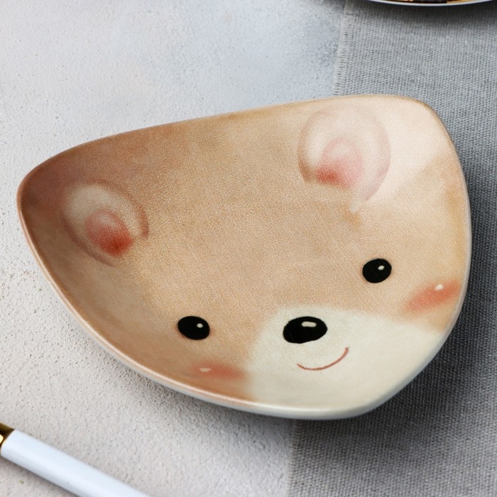 Тарелка керамическая «Мишка», 13.5 х 13.5 см, цвет бежевый