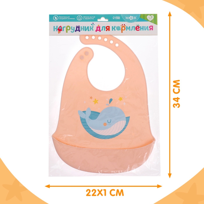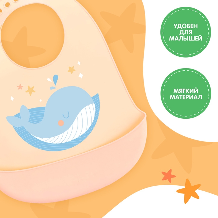 Нагрудник для кормления «Кит», силиконовый, с карманом, цвет молочный