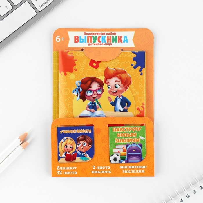 Подарочный набор на выпускной: Блокнот А6, 32л, наклейки и магнитные закладки 2 шт «Выпускнику детского сада»