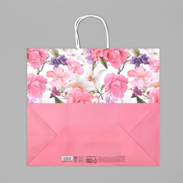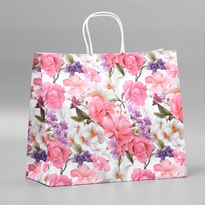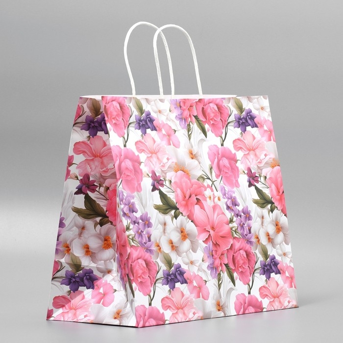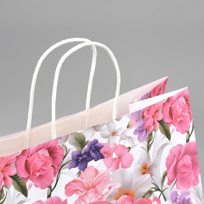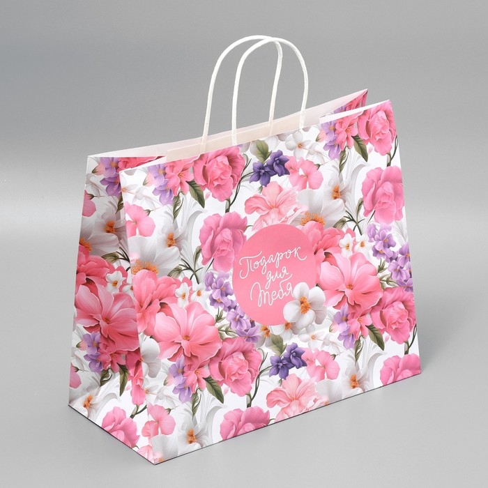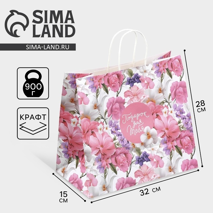Пакет подарочный крафтовый, упаковка, «Подарок для тебя»,цветы, 32 х 28 х 15 см