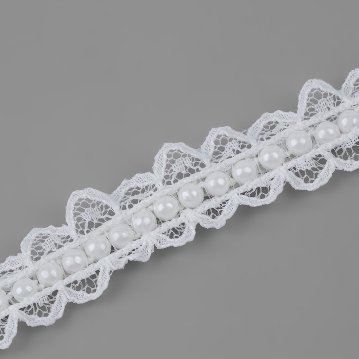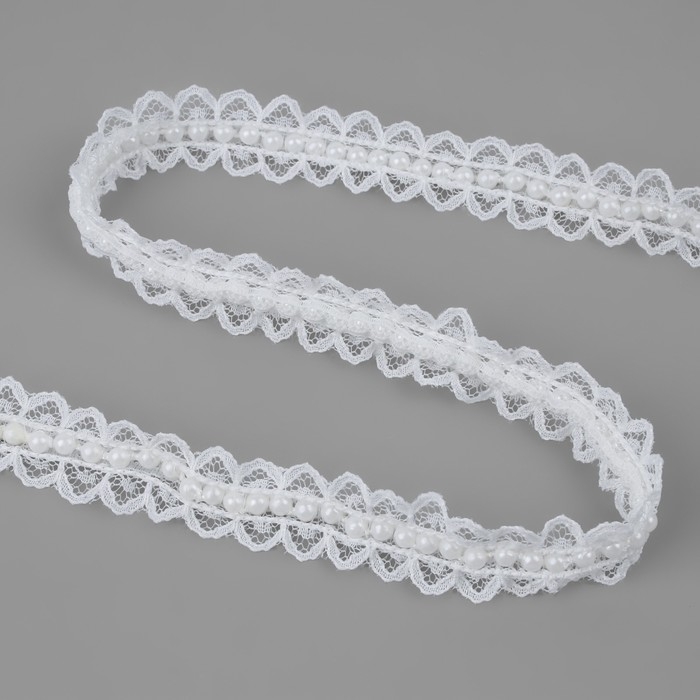 Рюш кружевной, с бусинами, 17 мм, 4,5 ± 0,5 м, цвет белый