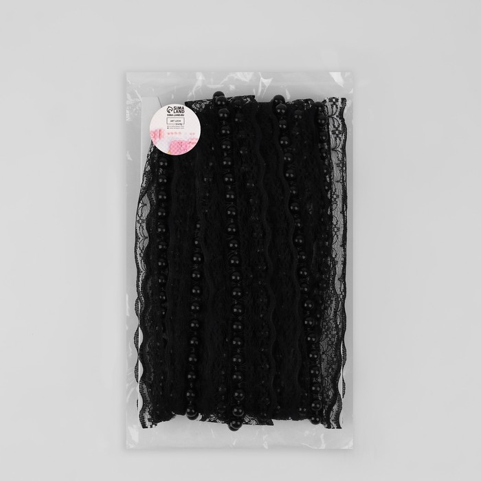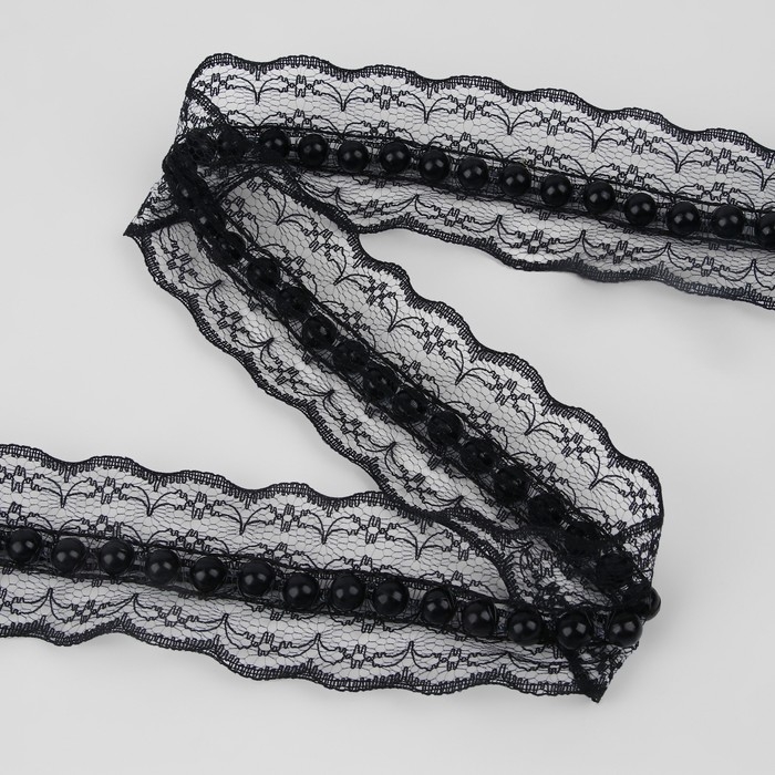 Рюш кружевной, с бусинами, 40 мм, 4,5 ± 0,5 м, цвет чёрный