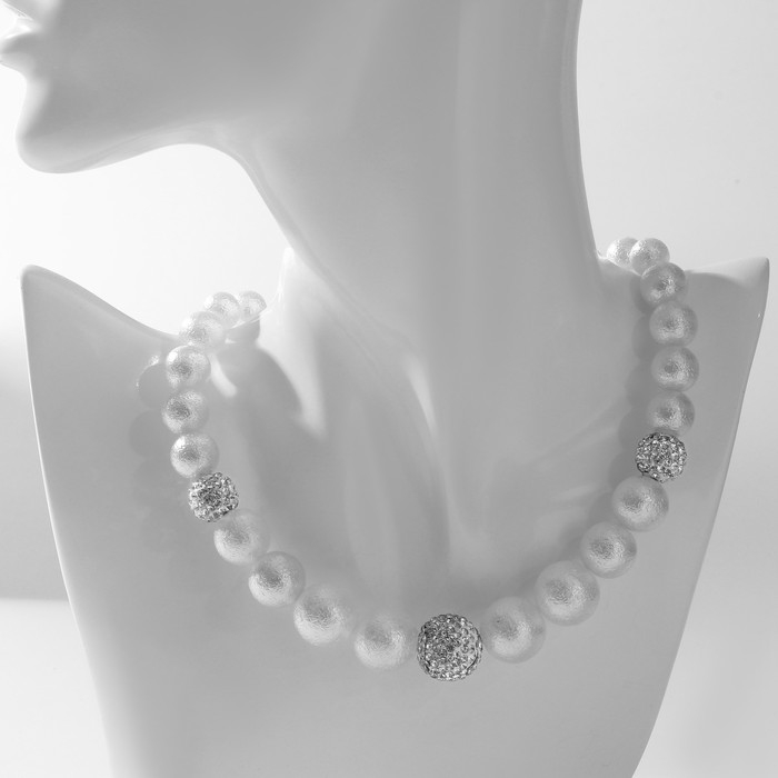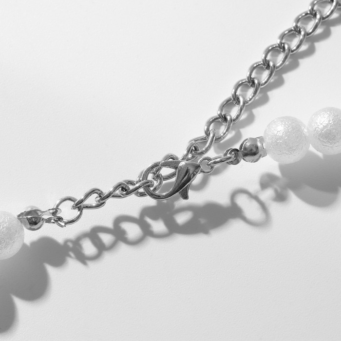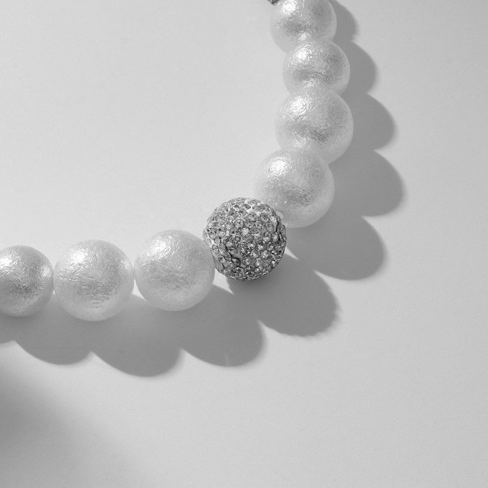 Бусы «Жемчуг» с шамбалой, бусины №8, 16, цвет белый в серебре, 38 см