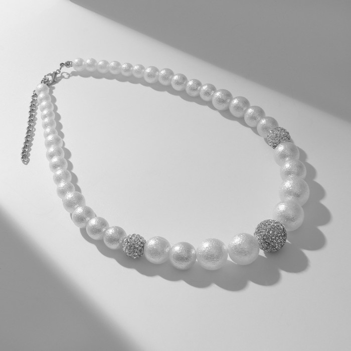 Бусы «Жгут» жемчуг, шар № 2,6,8, цвет белый в серебре, L=45 см