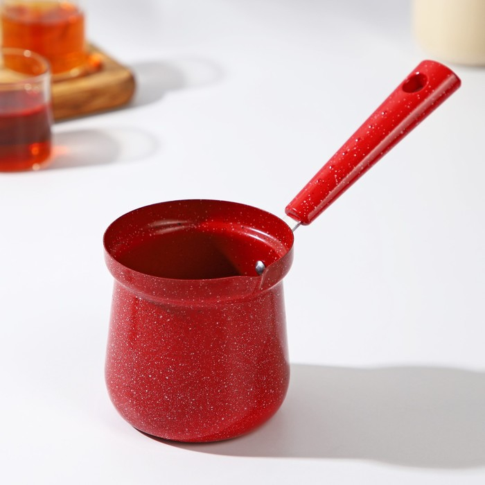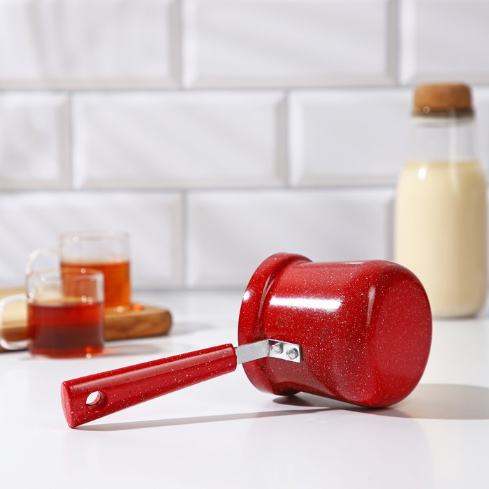 Турка Доляна «Мрамор рэд», 400 мл, d=8 см, пластиковая ручка, антипригарное покрытие, индукция, цвет красный